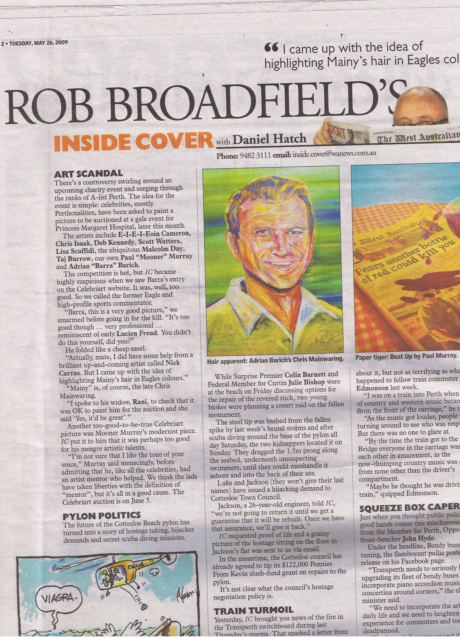 Rob Broadfield’s Inside Cover with Daniel Hatch, The West Australian, Tuesday,